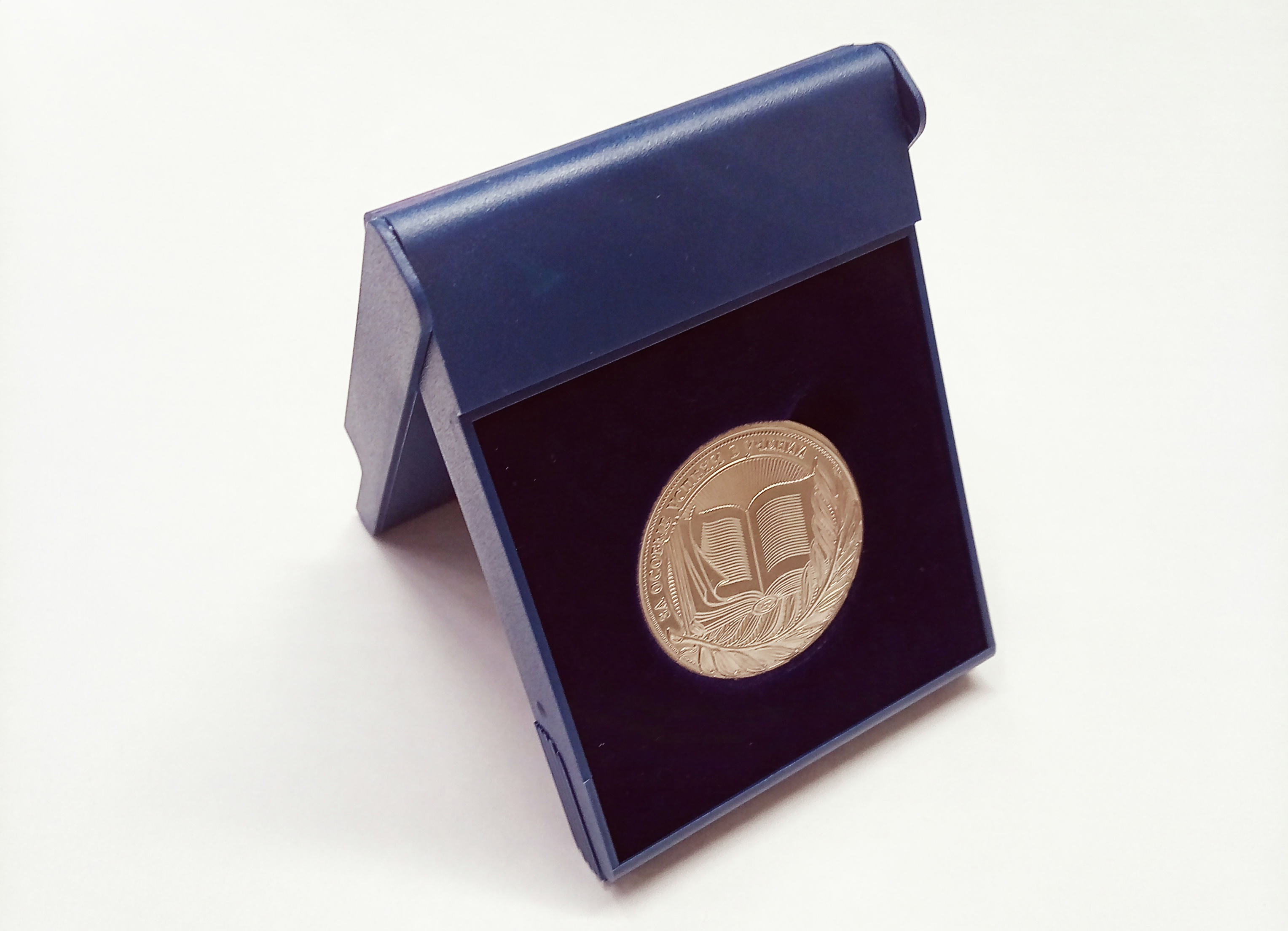 Медаль упаковывается в пластиковый футляр с изображением Государственного герба Российской Федерации, в бархатном ложементе футляра - углубление под медаль. Для медали "За особые успехи в учении" II степени используется футляр синего цвета
